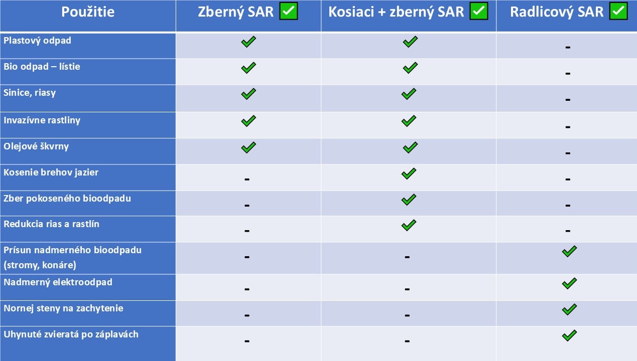 Zariadenie SAR 3E bolo navrhnuté pre čo najširšie spektrum využitia vo verejnom aj súkromnom sektore. Je ideálnym nástrojom pre čistenie a údržbu vodných plôch od mestských jazierok až po veľké zásobárne pitnej vody.