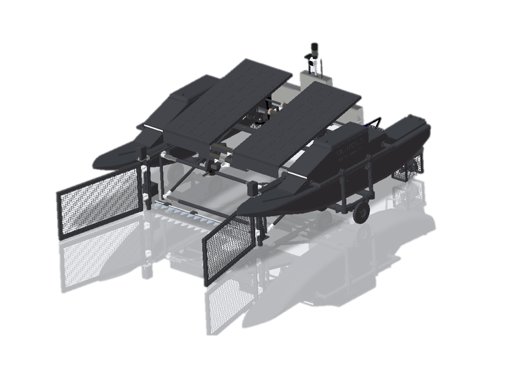 Zariadenie je vybavené výkonnými solárnymi panelmi (260 W), ktoré nabíjajú batérie a zabezpečujú úplne ekologickú prevádzku bez paliva.