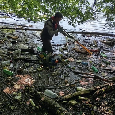 Together, we discussed the serious problem of pollution in stagnant and dead arms of water bodies. On site, we helped manually collect waste in one of Ružín’s dead arms, where plastics and other floating debris have long accumulated.
